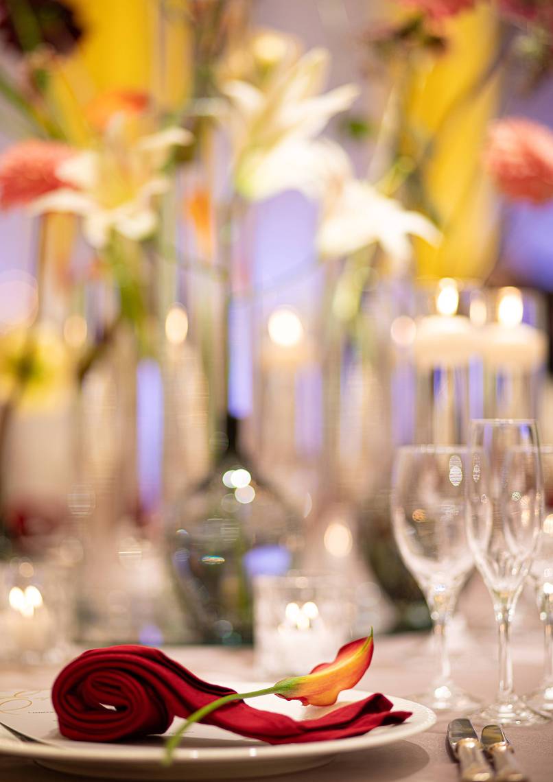 シンプルで上品な設えは、装花や照明、テーマカラーによってさまざまな表情を見せます。和洋どちらのスタイルにも美しく映え、ゲストに新鮮な印象を届ける柔軟さが魅力です。