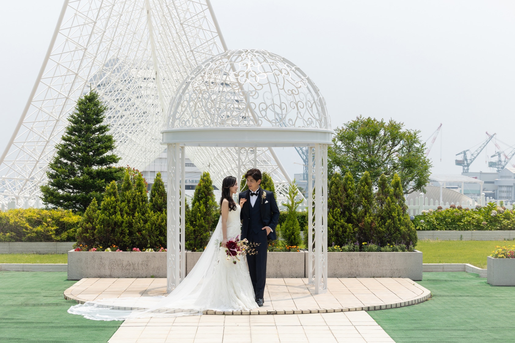 そして、青空と海をバックにフラワーシャワーの祝福を受ける「ルーフガーデン」など、