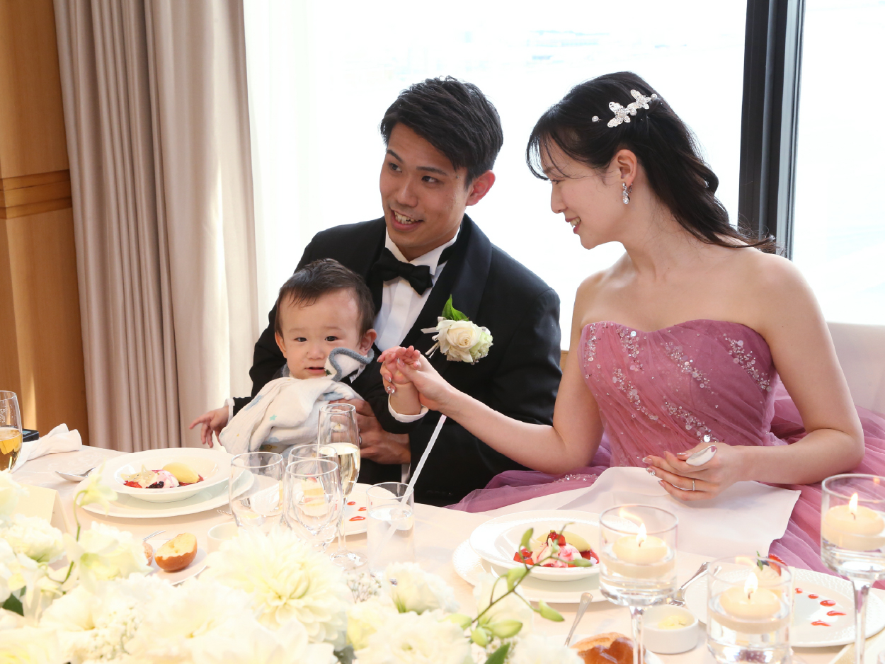 全てが本当に楽しく大満足で、一生の思い出になりました。 関わってくださった全ての方々に心より御礼申し上げます。 私たちは本番3ヶ月前に契約をし準備期間が短かったり、乳幼児が2人いたり夫が海外赴任中だったり、大変な部分が多かったにも関わらず、オンラインミーティング等イレギュラー対応をしていただき大変助かりました。 また当日もどのスタッフの方も動きが大変良く安心して挙式披露宴を楽しむことができました。 披露宴中も幼い娘のことを気にかけてくださったり、BGMもその時の場面や内容に合わせて柔軟にアレンジしてくださったり、プロの動きに感動しました。 総じて本当に夢のような時間を過ごすことができました。 今後もお食事や宿泊をさせていただき、思い出を重ねていきたいと思います。 この度は本当にありがとうございました。